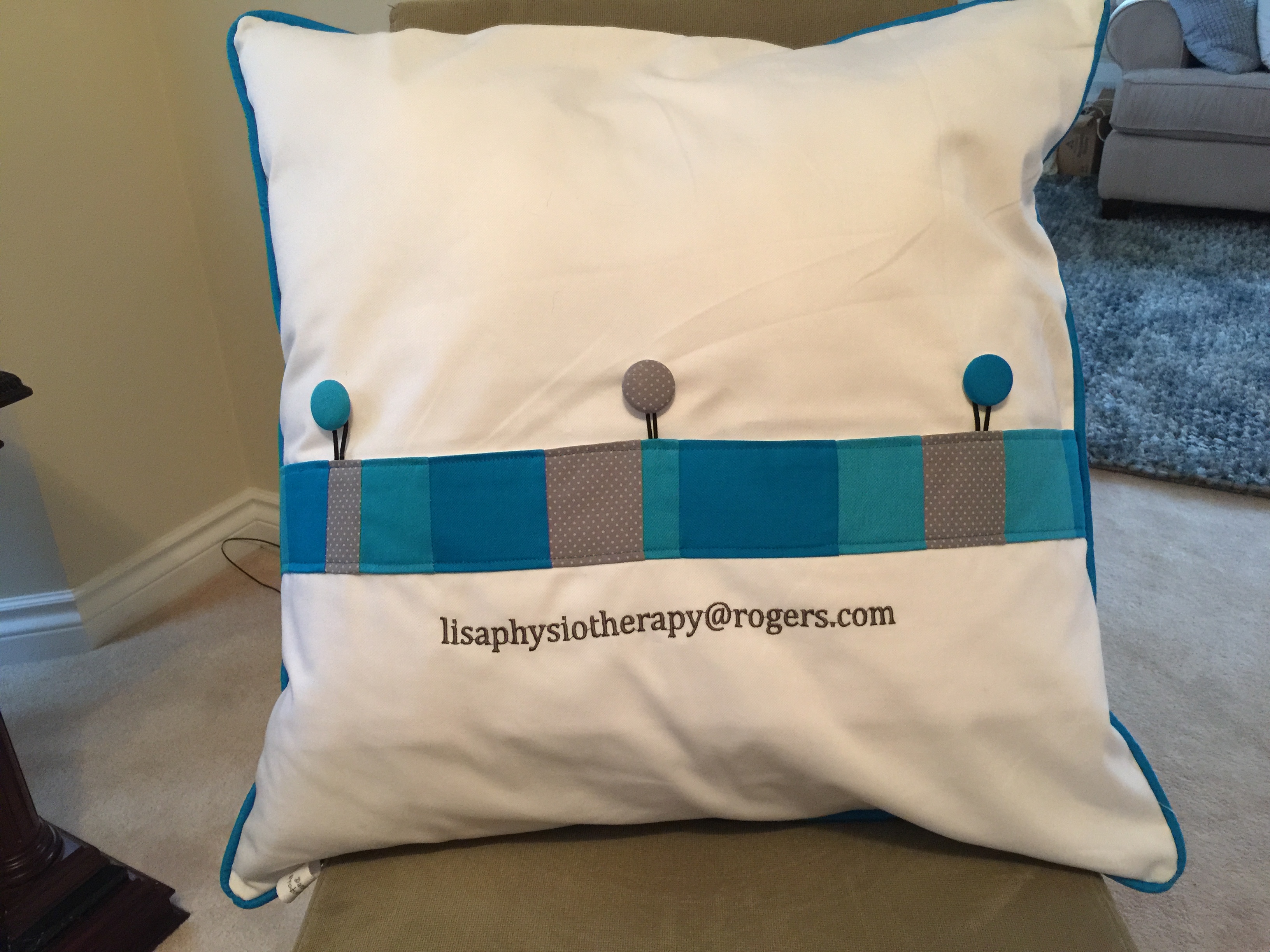 The fabric is so gorgeous …From Connecting Threads, though I see they are sold out. I can search for the name if you like, just message me. I quilted it and bound each piece before assembling, basically following the pattern, though I made a monogrammed pocket for the front. No easy feat since my laptop has been annoyingly temperamental and required some major techy adjustments ( don’t ask, as I don’t really know what I’m doing, but it did work better in the end)