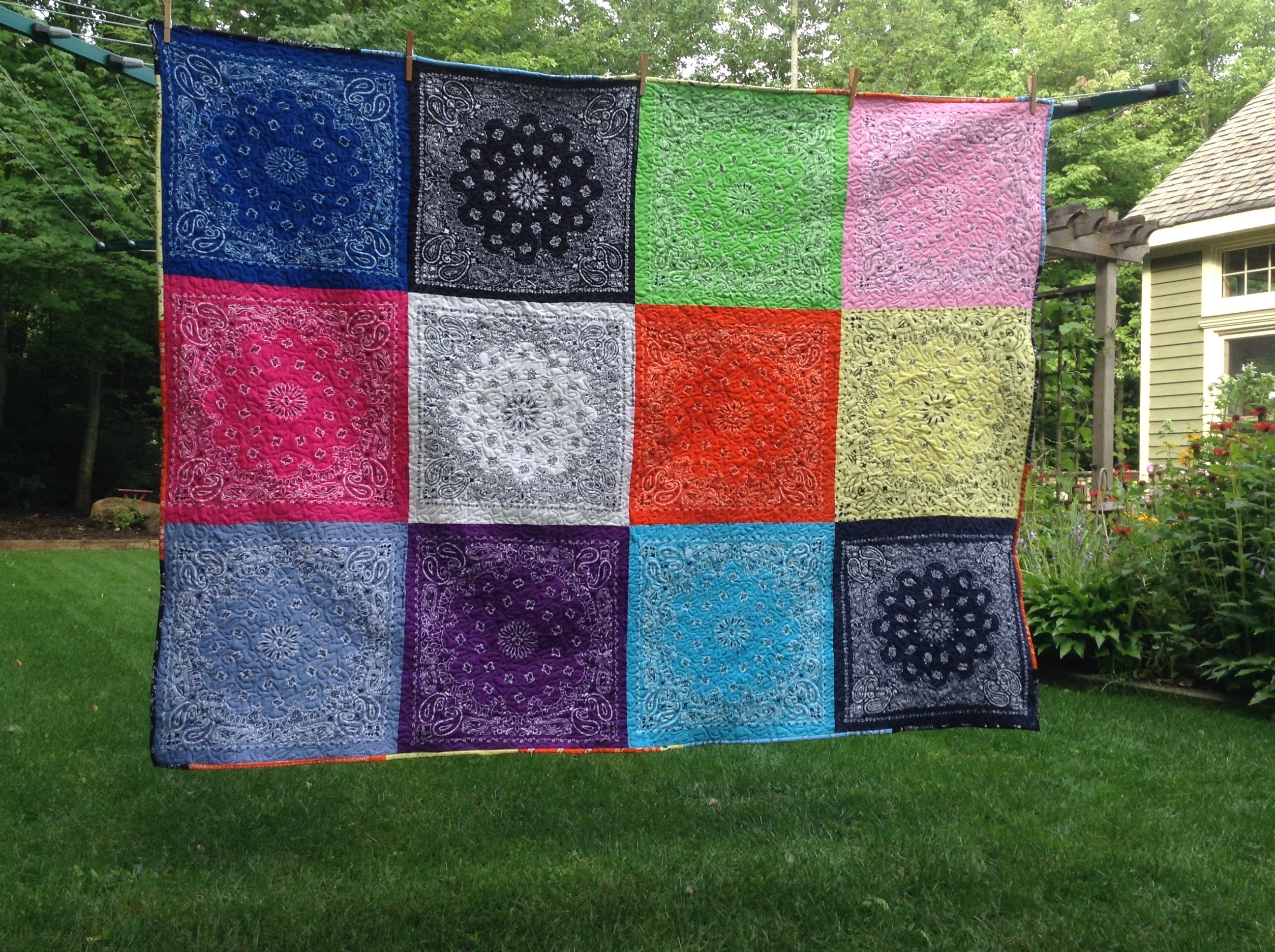 My latested: the Florida Bandana Quilt: I may blog about it tomorrow. If I can get myself out from under it.