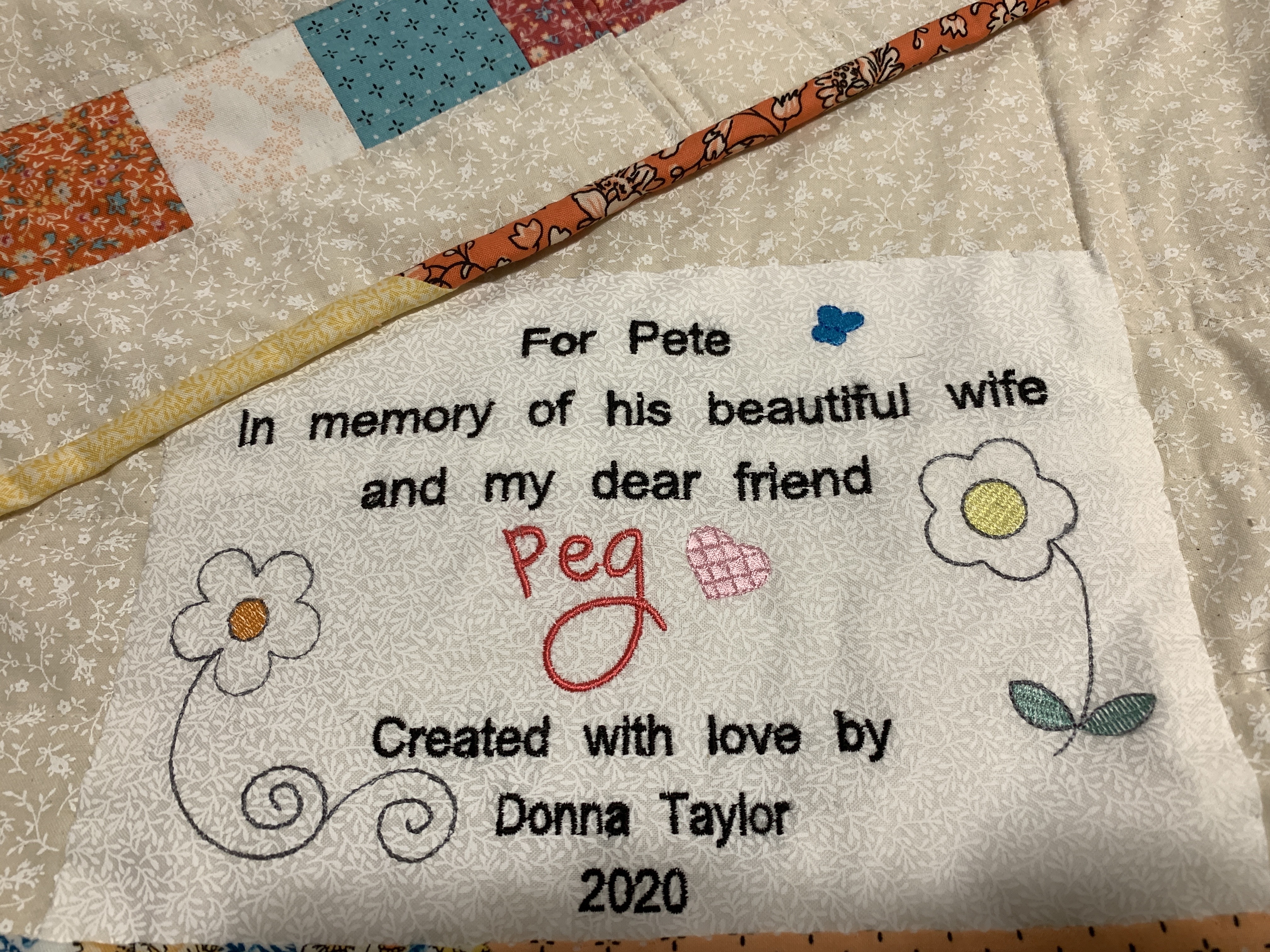 Memory quilt for Meg