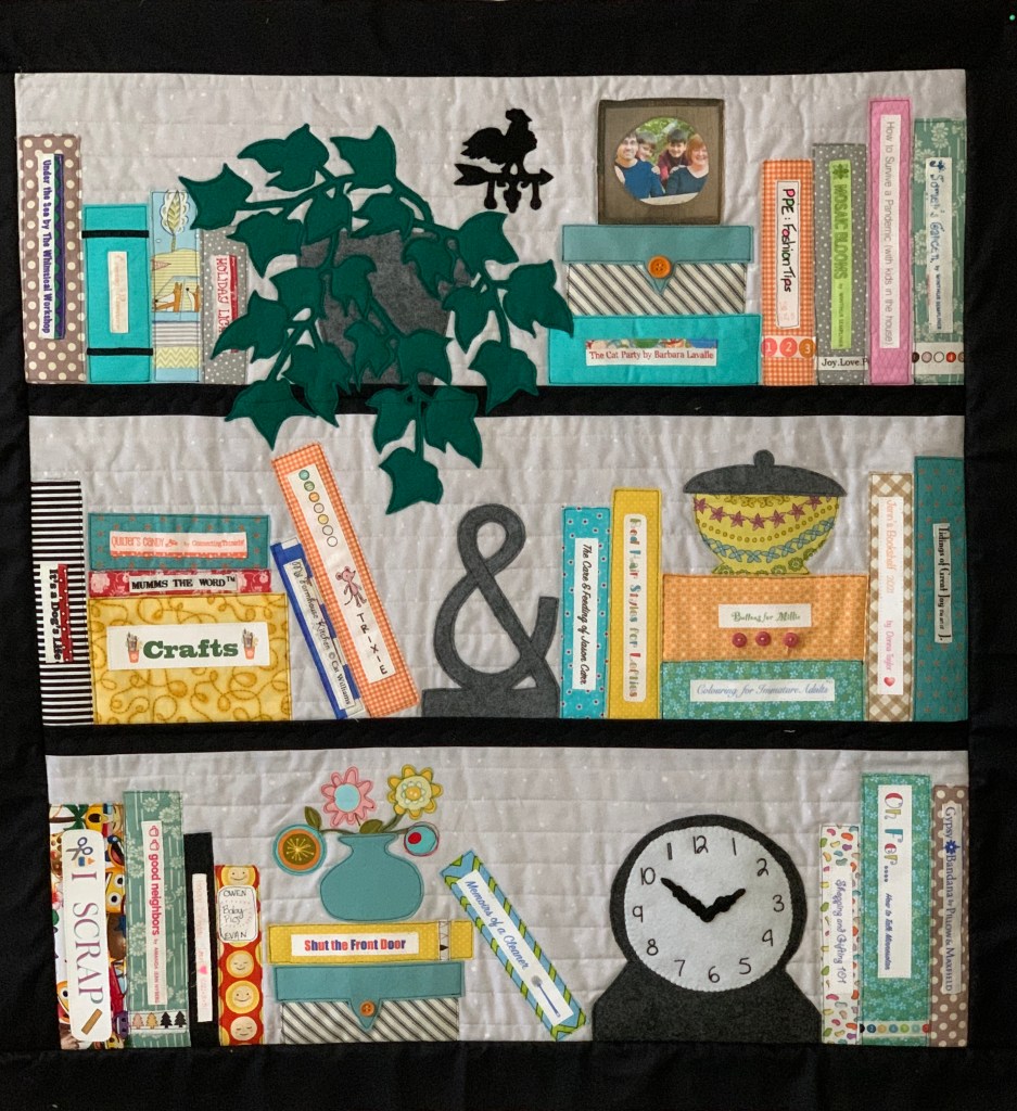 I so love the bookshelf pattern by Annie. I’ve made 3 with modifications. It’s the personalization I love most. This one I created for Mark and me and tells the story of our lives with personal touches that only we would understand. Like how the clock is set to 4:44. Check out the book titles. The Life of Buddy. Sigh. Our sweet cat died just at the start of the Pandemic. Dreaming of Cornwall…. a wish that came true. 🙂 And a bunch others. The bookshelf now lives now on our hot tub.