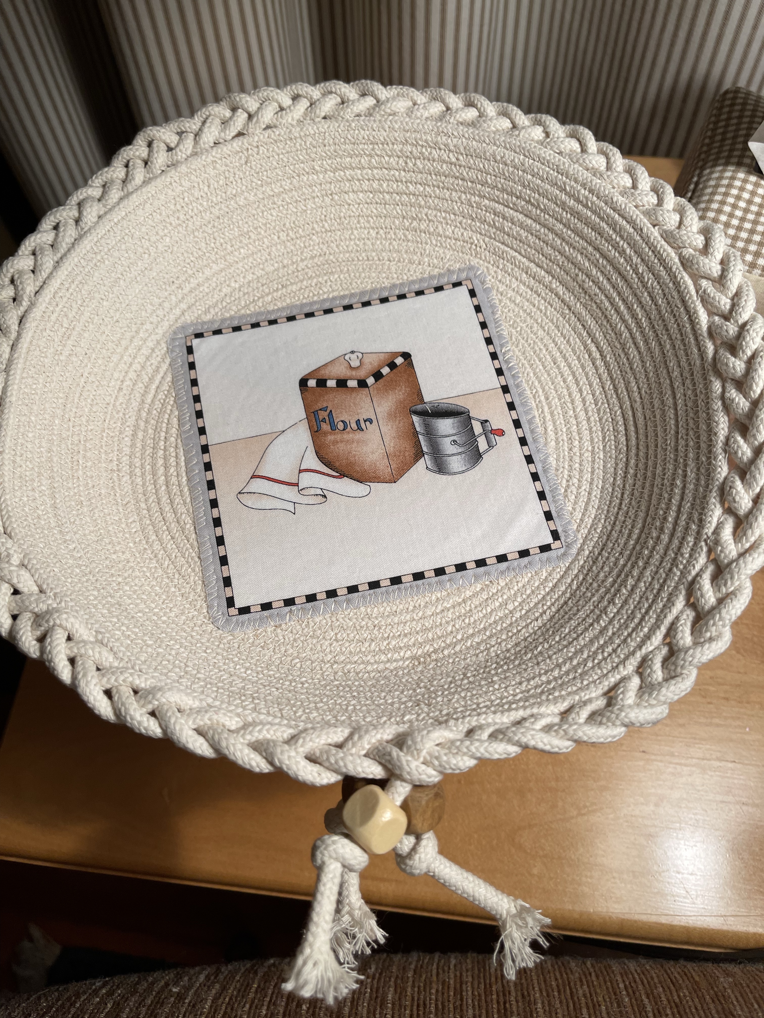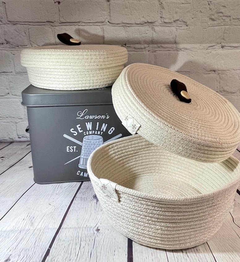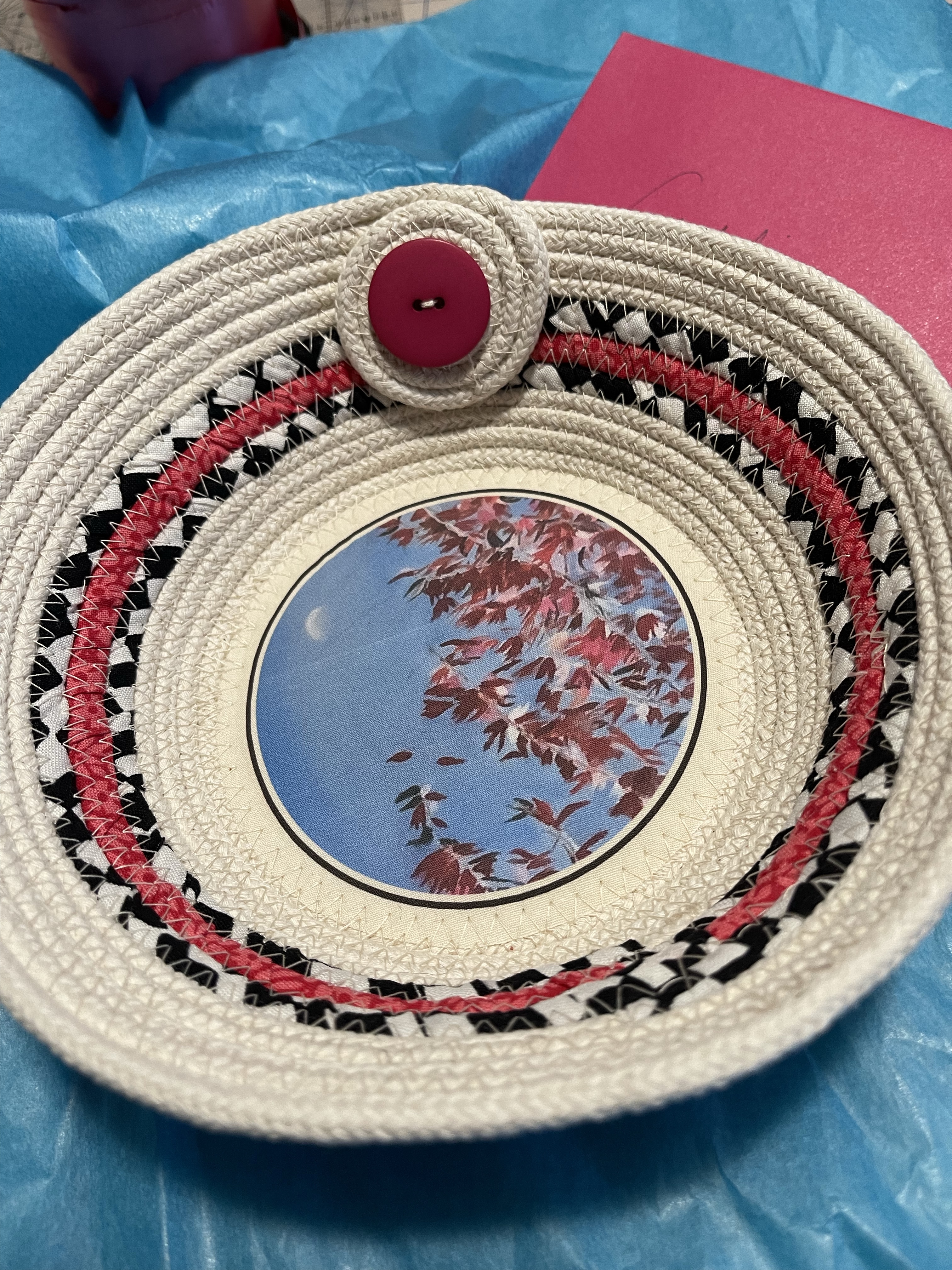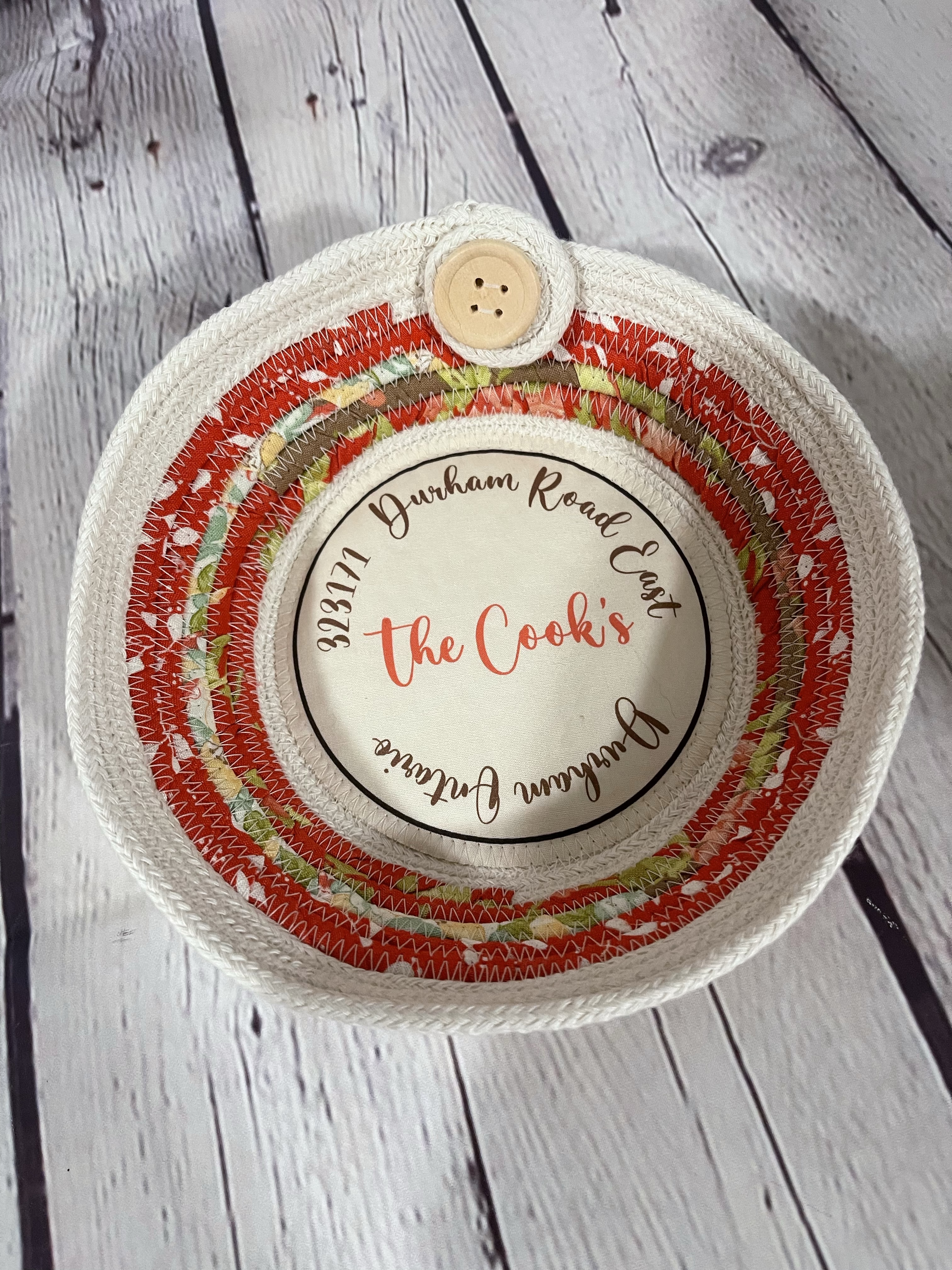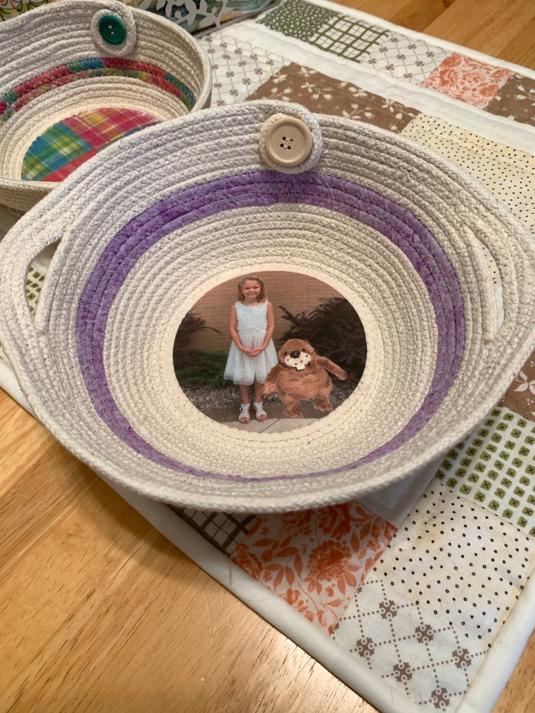 My new favourite creative outlet. I have used only 3/16th cotton clothesline cord so far and have played with fully wrapped and partially wrapped. It’s been fun to learn to add fabric to the bottom and even more fun to add a photo to the fabric bottom.