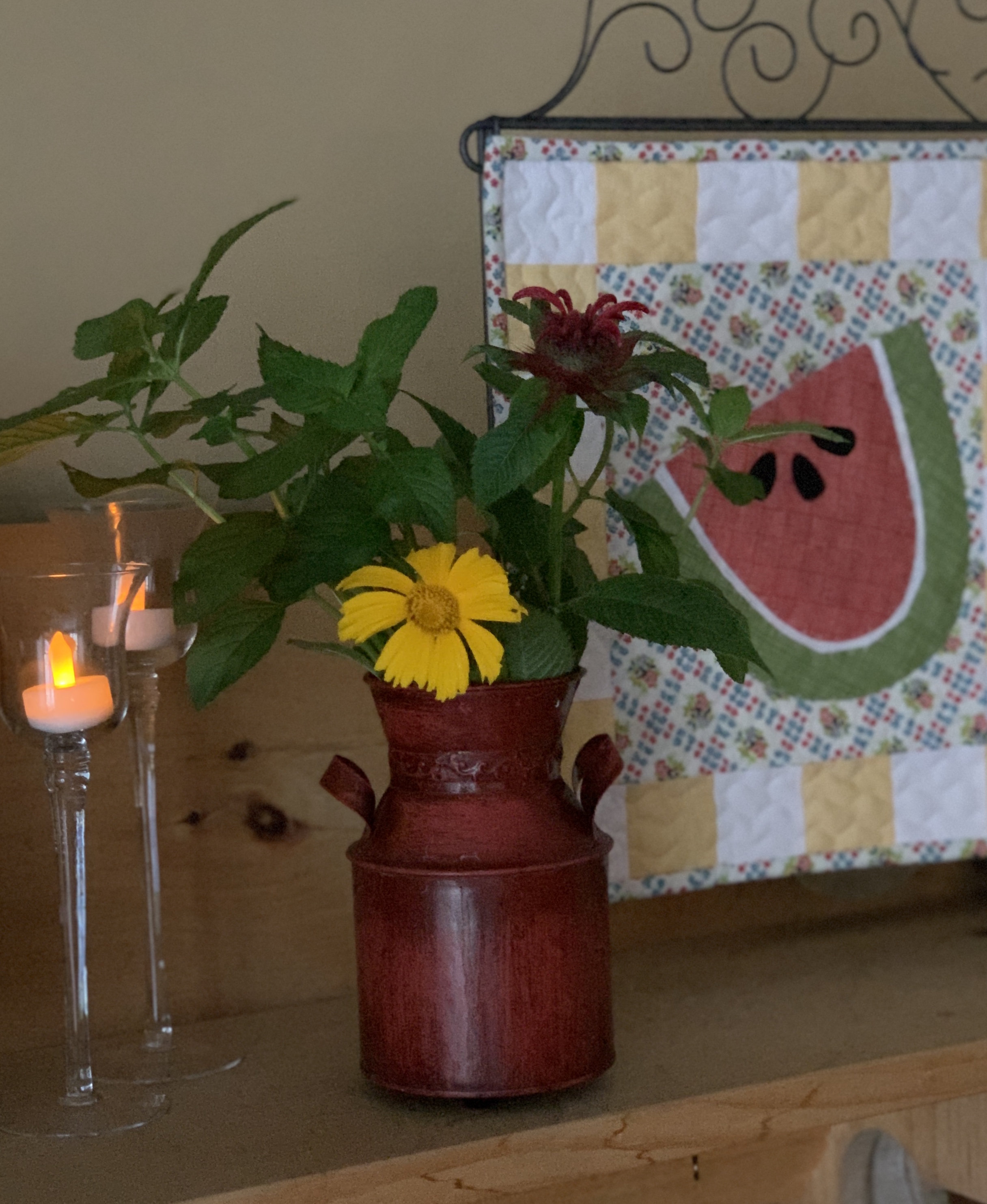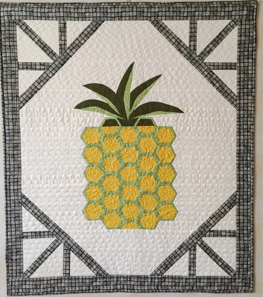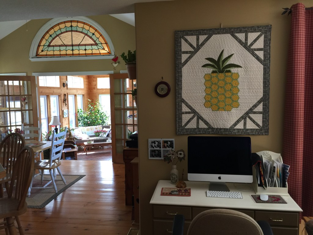 I made this wall hanging from fabric purchased in Dunedin Florida, one of our favourite places. (Go Jays) so if pineapples weren’t already special to us, this makes them more so. We kinda have a thing here about this “welcoming” fruit.