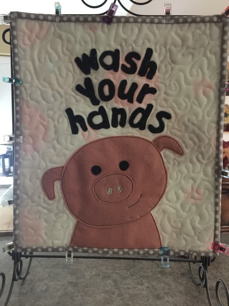 For Peg (Piglet) when she was going through cancer treatment, to help people remember to wash up when they came into her house.