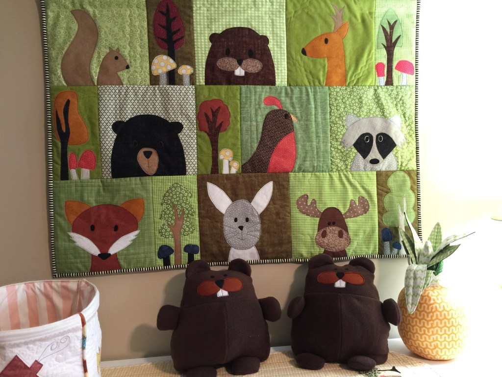 Woodland creatures (pattern from Shiny Happy World). I was asked to make a quilt with this pattern and did so… see Quilty Things, and loved the animals so much I had to keep some for myself.